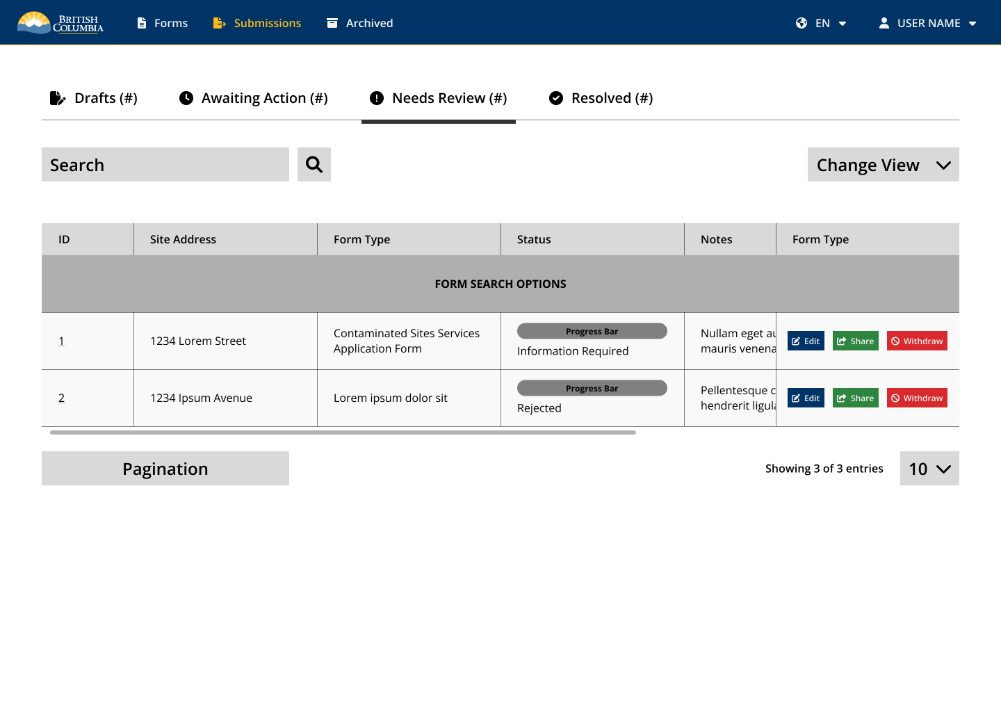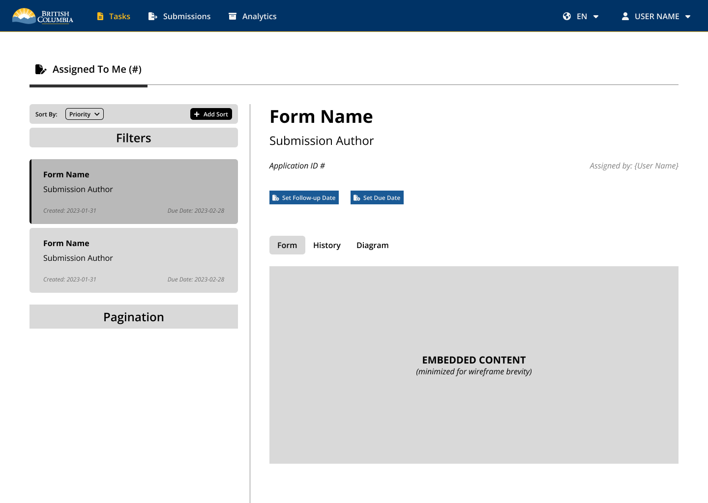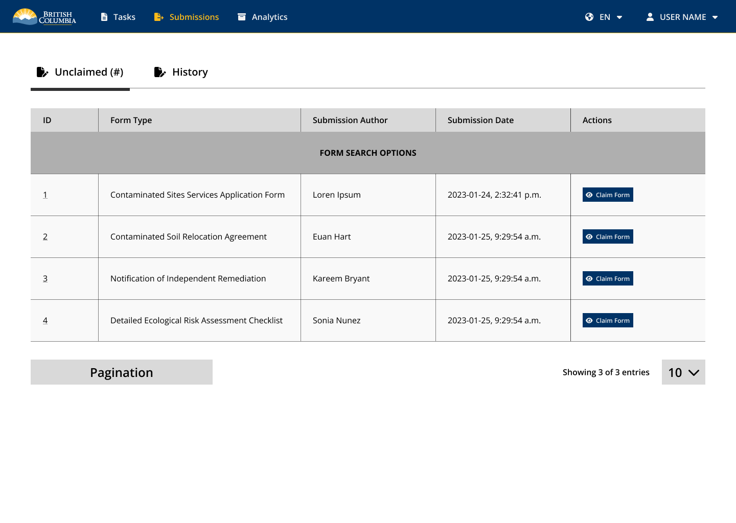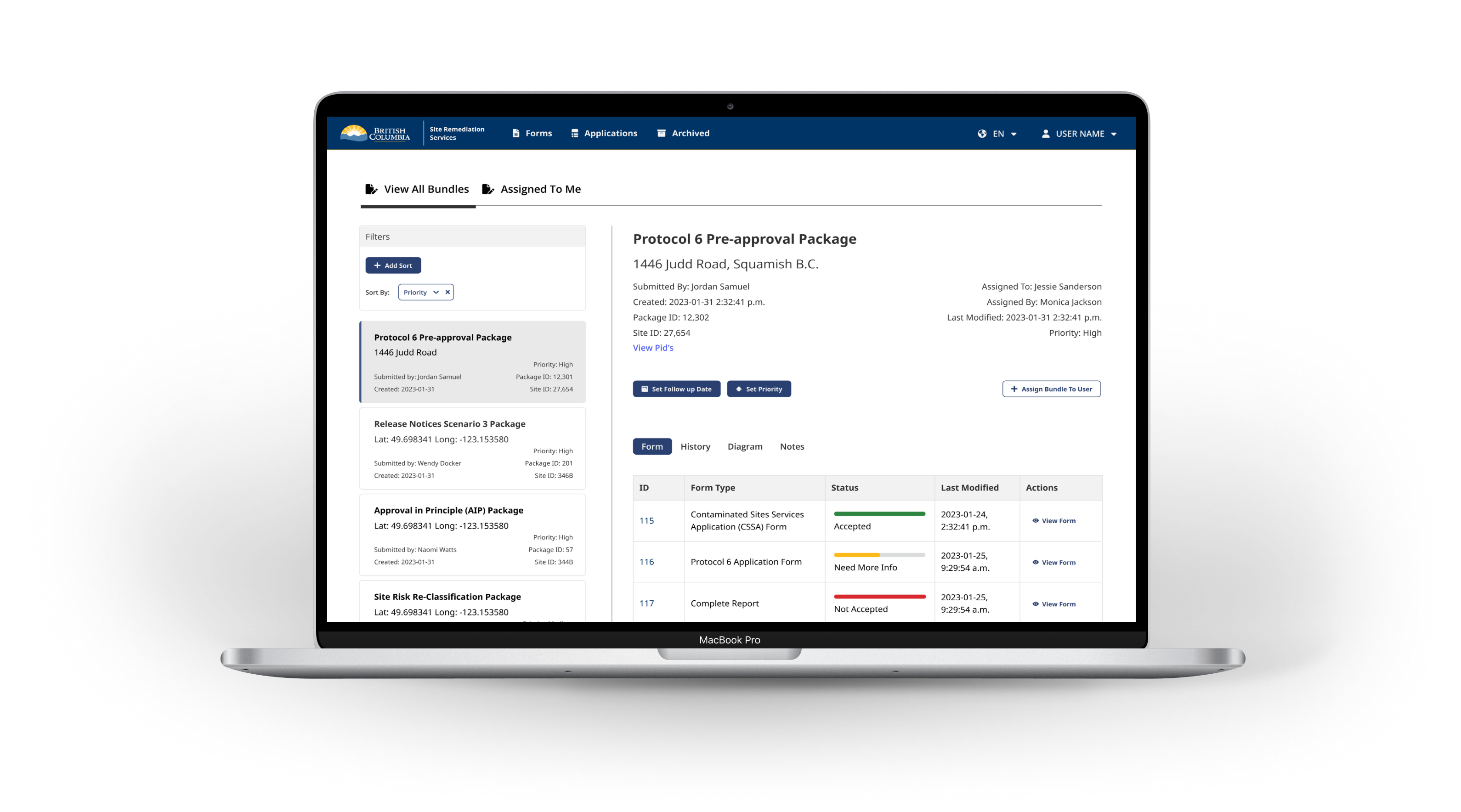 Prototyping for the Site Remediation Services app focused on designing tailored experiences for both internal and external users. For external users, prototypes aimed to simplify the application process by improving form usability, introducing guided workflows, and ensuring mobile responsiveness. Internal user prototypes were designed to streamline review workflows, enhance visibility into application status, and support decision-making with clearer dashboards and user notifications. Both sets of prototypes were developed iteratively in Figma, tested with target users, and aligned with accessibility standards and the BC Gov Design System to ensure usability, consistency, and scalability across platforms.