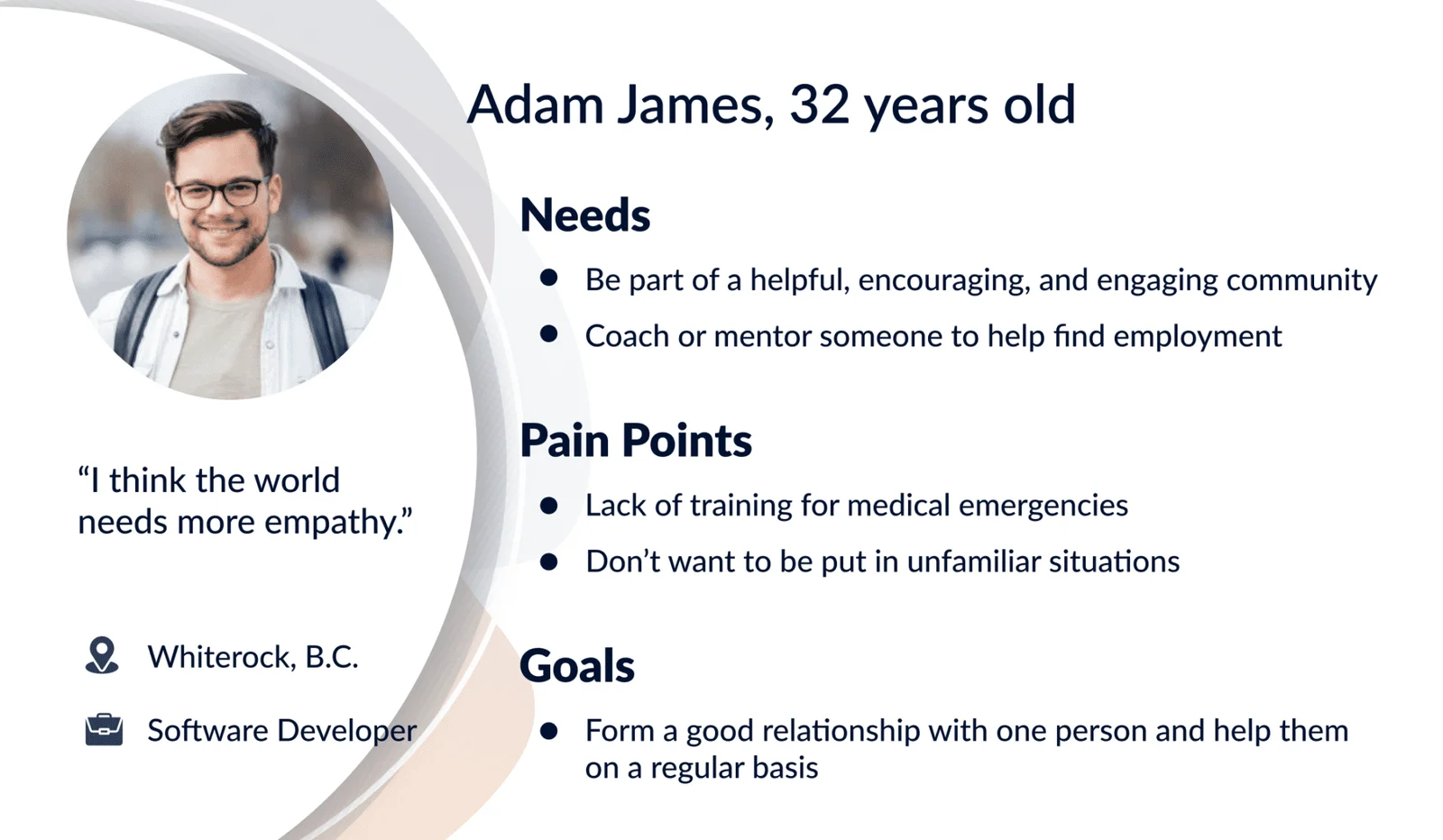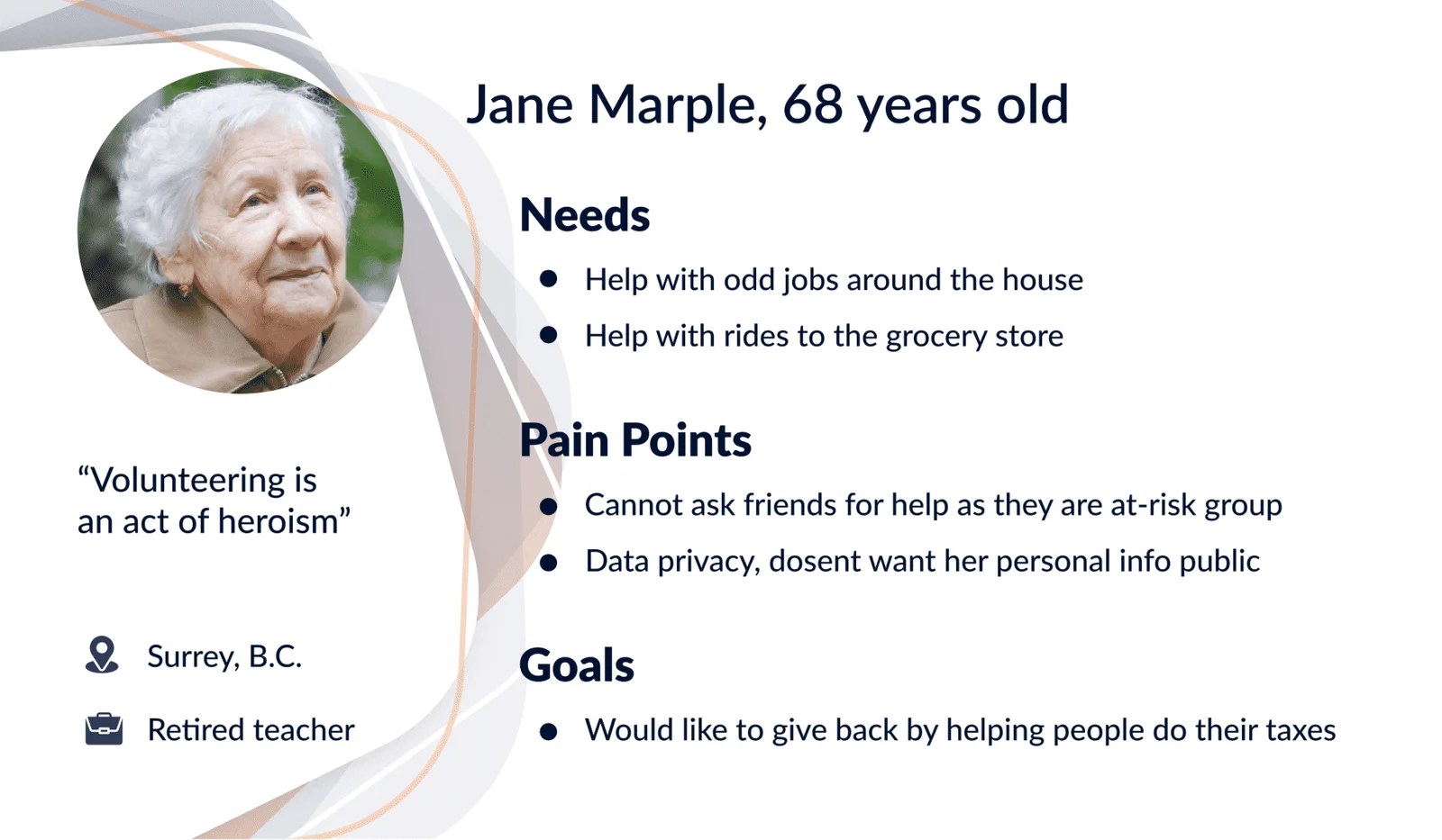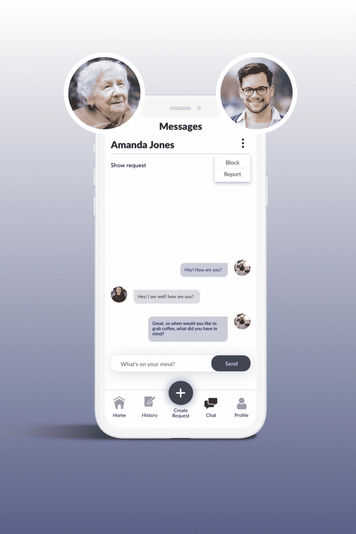 Browsing the app for volunteer opportunities Adam discovers Jane’s request and sends her a message.