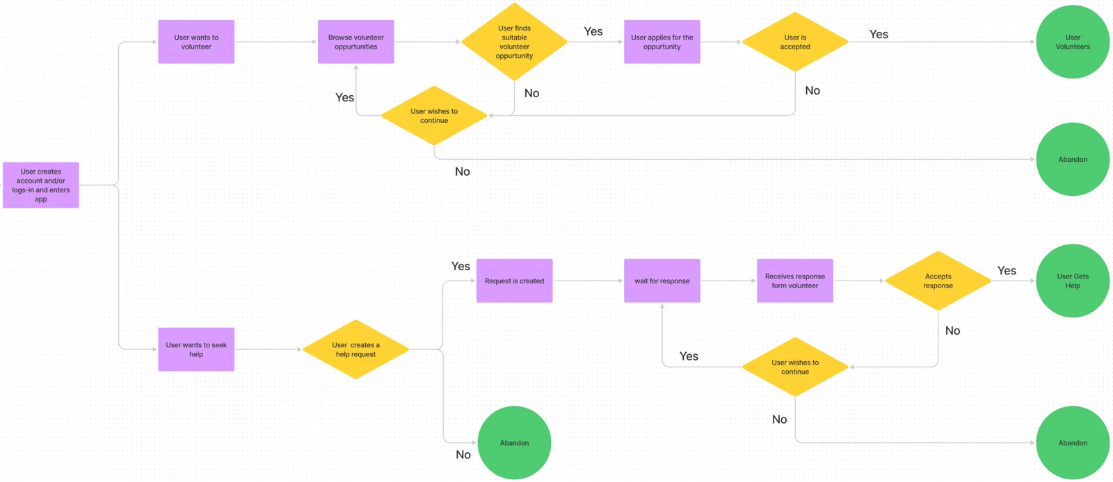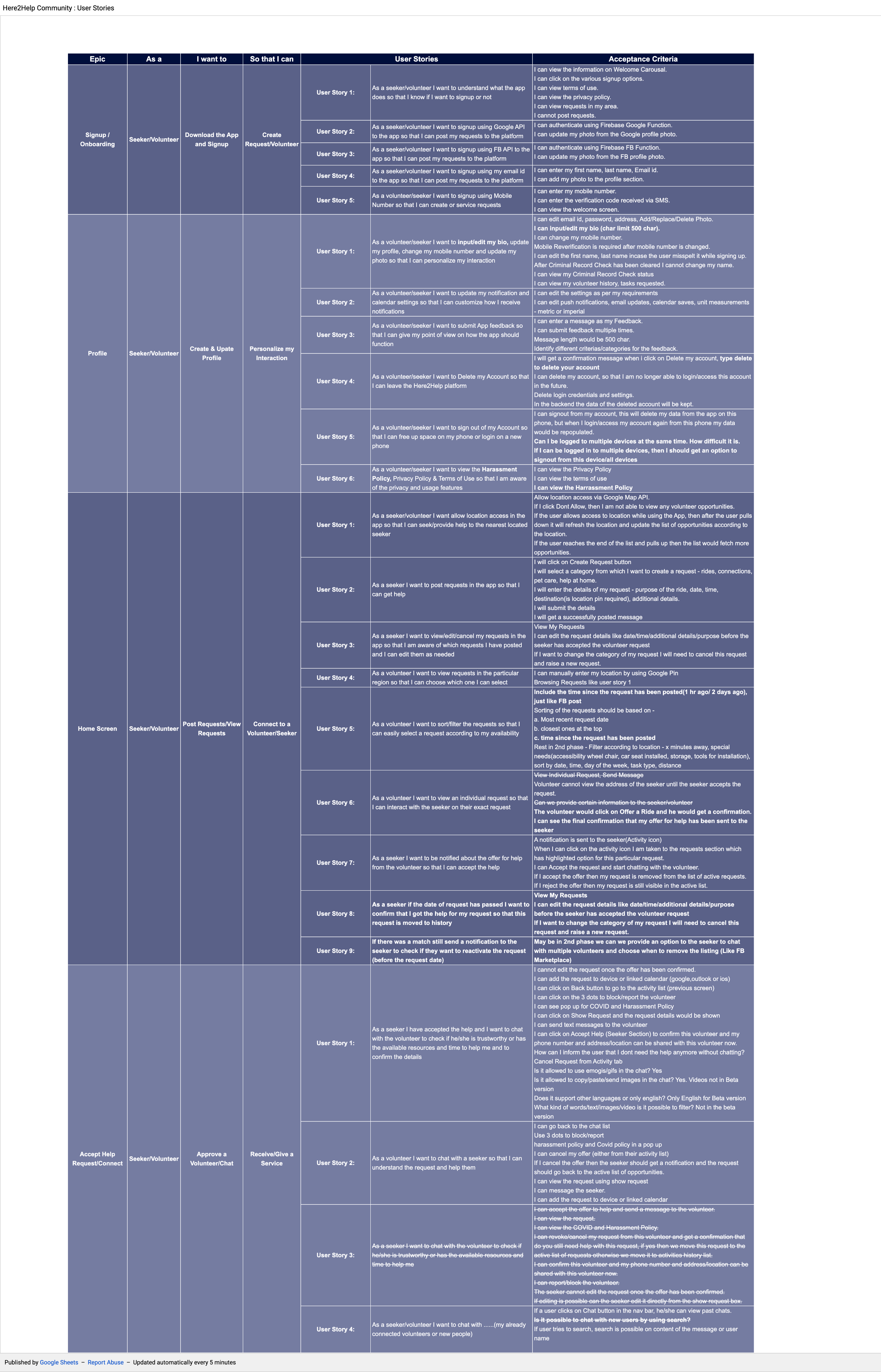 User stories were essential in guiding the development of the Here2Help Community app, ensuring that every feature was designed with real user needs in mind. By focusing on the specific goals and challenges of both volunteers and people seeking support, we were able to prioritize features that truly mattered. This user-centered approach helped us create a practical, intuitive, and supportive experience for everyone in the community.